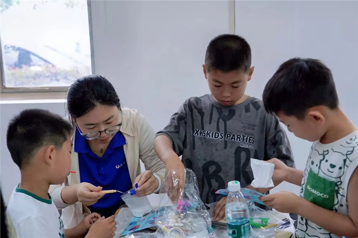 ▲在父母的陪伴與引導下,萌娃們用巧手將色彩斑斕的材料變?yōu)橐幻睹丢氁粺o二的創(chuàng)意冰箱貼。