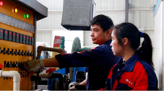 ▲劉學(xué)文正在給同事演示機(jī)器操作