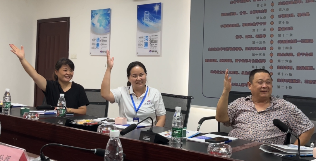 為更好了解員工的建議和意見(jiàn),提高員工滿意度,提升團(tuán)隊(duì)的凝聚力、創(chuàng)新力和執(zhí)行力,共建溝通渠道。近日,湘聯(lián)電纜隆重召開(kāi)2022年8月份新員工座談會(huì),品牌部總監(jiān)楊潔、技術(shù)總監(jiān)孫輝、財(cái)務(wù)部經(jīng)理章義、安環(huán)部經(jīng)理肖海泉出席會(huì)議。