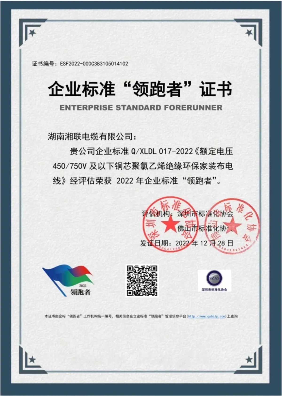 自成立以來,湘聯(lián)電纜以“質(zhì)量是發(fā)展的基石,是客戶信任的唯一理由”為指導(dǎo),將產(chǎn)品質(zhì)量視為企業(yè)生命線,不斷引進國內(nèi)一流的電線電纜生產(chǎn)和檢測設(shè)備,以科學(xué)的經(jīng)營管理理念,組建實力雄厚的技術(shù)研發(fā)和企業(yè)管理團隊,建立高標準質(zhì)量管理體系,對生產(chǎn)全過程實現(xiàn)智能化數(shù)字化管理,公司產(chǎn)品先后通過國家強制性產(chǎn)品認證(CCC認證),榮獲企業(yè)標準“領(lǐng)跑者”等榮譽稱號,獲得用戶的廣泛認可。