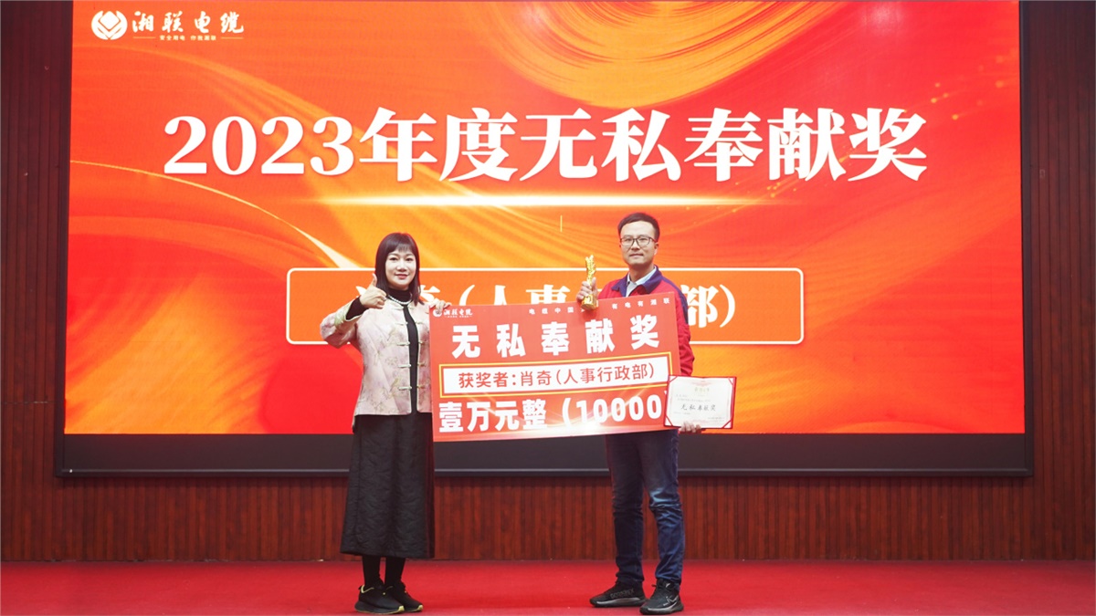 學(xué)先進(jìn)應(yīng)爭當(dāng)先進(jìn),趕先進(jìn)才能先進(jìn)輩出。公司的發(fā)展離不開每一位恪盡職守、辛勤付出的優(yōu)秀湘聯(lián)人,在盛會上,對2023年度表現(xiàn)優(yōu)異的個人和團(tuán)隊(duì)進(jìn)行了一一表彰頒獎,頒發(fā)獎項(xiàng)包含主人翁精神獎、卓越功勛獎、無私奉獻(xiàn)獎等十二個獎項(xiàng),獎品包含商品房、現(xiàn)金、榮譽(yù)證書、獎杯,激勵全體員工以先進(jìn)為榜樣,向優(yōu)秀靠近,2024年再創(chuàng)佳績。